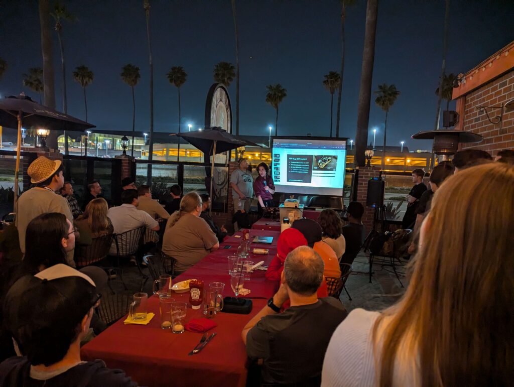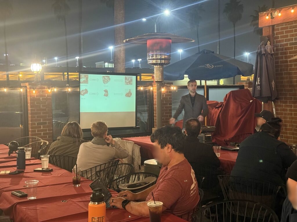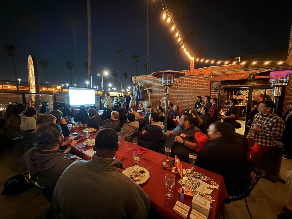 IVU started strong into the new year! With high Santa Ana winds, we met in Gulliver’s banquet room instead of the patio. We had 60 attendees, with a healthy number of first timers. The banquet hall was still decked out in Christmas decor, which made for a fun meeting!